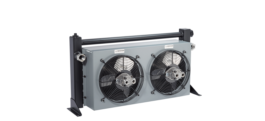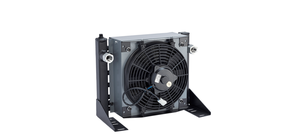 The Mobile AOC Series features DC or hydraulic fan drives and is ideal for low flow applications. This cooler is a cost effective solution for power unit applications and is available in single or dual fan designs. The dual rated (50/60 Hz) electric motor allows for application flexibility. Removable air filters prevent air-side core blockage (clogging of fins with debris) and aggressive turbulators allow for optimal heat rejection at lower flow rates.