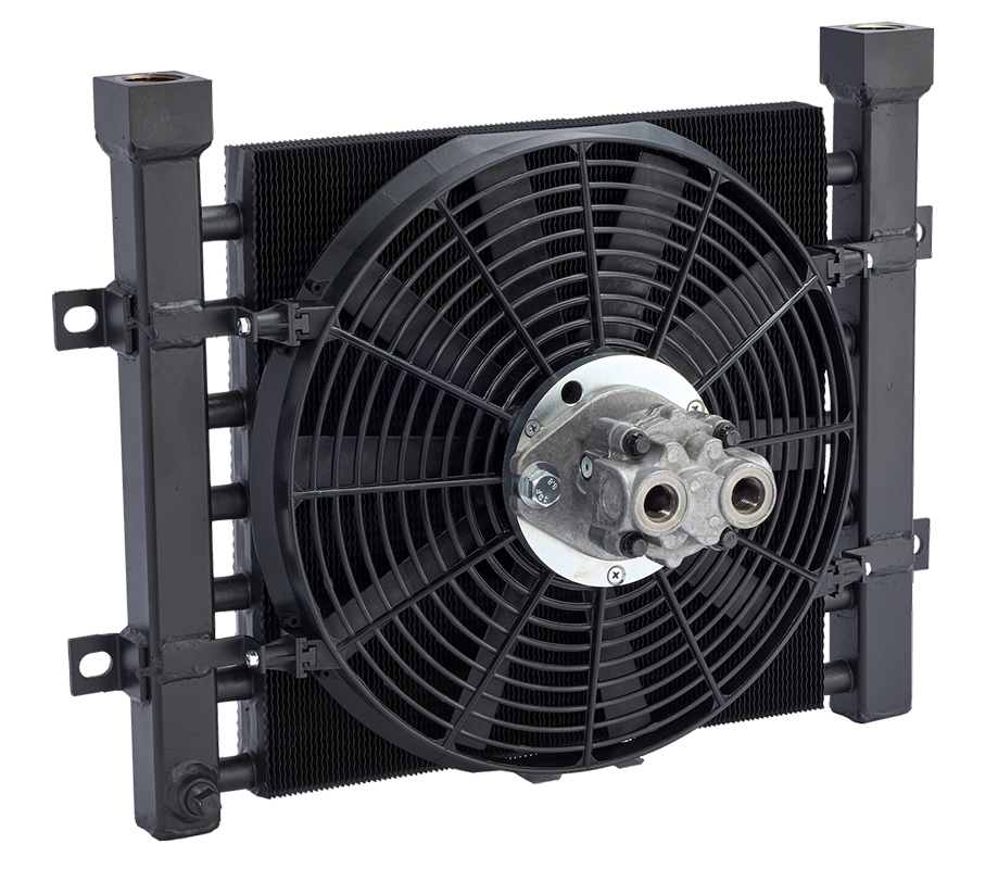 The Mobile DF Series is ideal for very rugged applications, with a robust design that includes steel tanks and damage-resistant steel fins. This series features moderate flows, high heat removal and an optional serviceable internal pressure bypass. Though similar to the DH Series, the DF incorporates DC fans or long-life hydraulic motors.